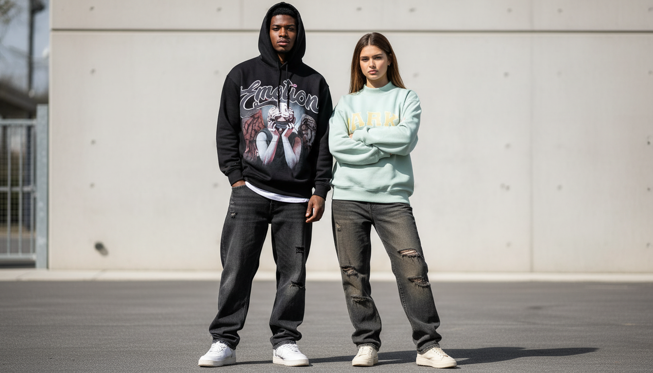 Mixed emotion style is a fashion concept that focuses on expressing different moods through clothing. It blends contrasting elements such as soft and bold colors, relaxed and structured pieces, or simple and statement accessories. When paired with a Parke sweatshirt, this style allows individuals to create outfits that feel personal and expressive. For example, combining neutral sweatshirts with distressed jeans or vibrant sneakers can create a balanced yet eye-catching look. This style is not about perfection but about authenticity and showcasing different sides of personality through fashion.