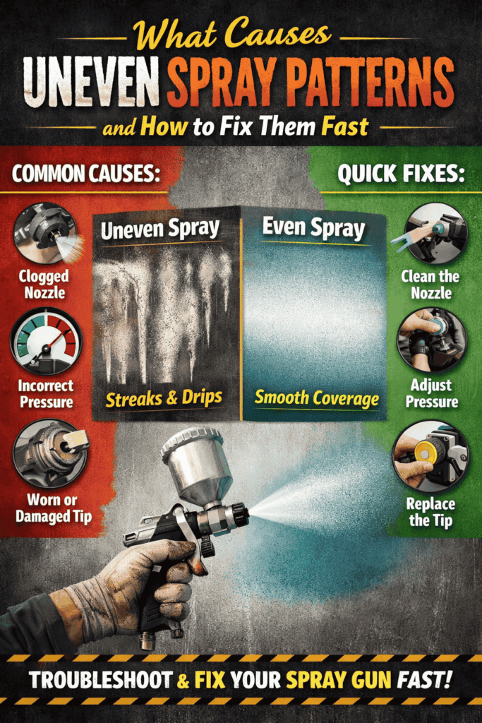This guide explains the most common causes of uneven spray patterns and how to fix them fast so you can get back to work without delays.