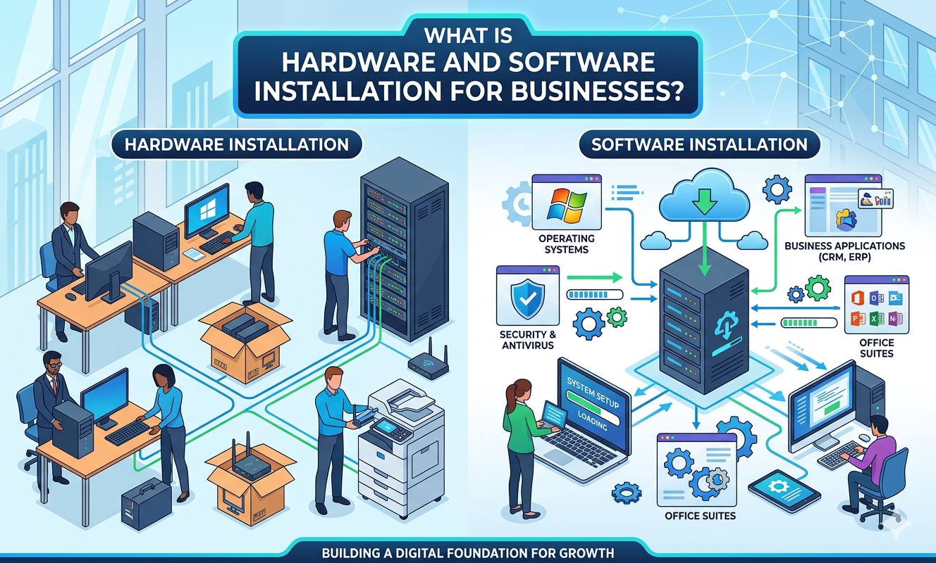Hardware and Software installation forms the backbone of modern business operations. It ensures that all technology components function efficiently, securely, and reliably. From setting up devices to configuring applications, every step plays a critical role in building a strong IT infrastructure.